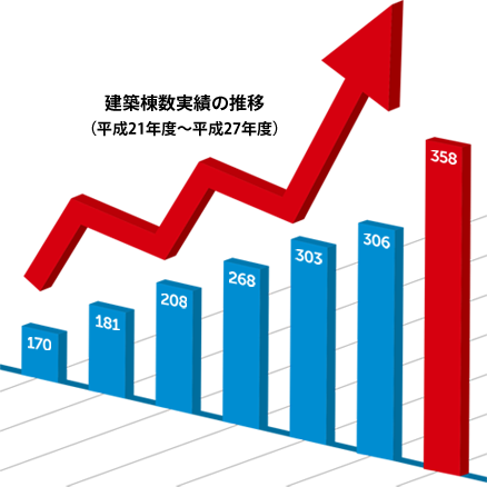 おかげさまで、シアーズホームグループの全体建築棟数は毎年順調に増加し、これまでに積み重ねた施工実績は10,000棟以上(2024年5月現在)になりました。また、2019年度~2023年度の九州地場資本住宅メーカーにおける九州ビルダー着工棟数ランキングにおいて第1位を獲得しました。※調査元:住宅産業研究所「TACT」より