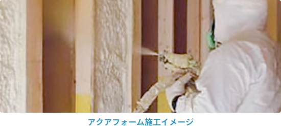 泡の断熱材「アクアフォームライト」で家を包みこみ、高気密・高断熱の住空間を実現