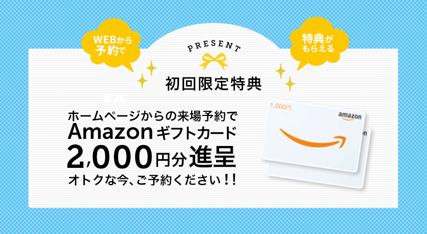 期間中は、選べる3つのイベントを同時開催!事前のWEB予約で初回限定特典として「アマゾンギフトカード2,000円分」も進呈中!