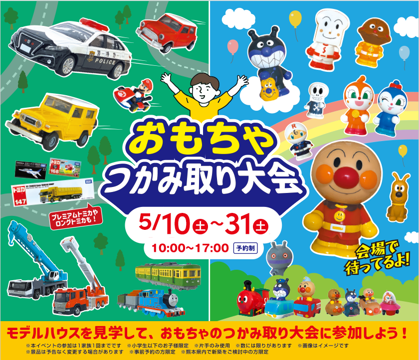 5/10(土)~5/31(土) モデルハウスを見学して、おもちゃのつかみ取り大会に参加しよう!